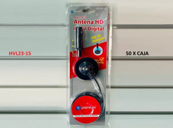 La Antena Digital HVL23-15 HC Premium ofrece recepción de alta definición (HDTV) con excelente rendimiento y estabilidad. Diseñada para captar señales TDT con gran precisión, permite disfrutar de canales locales y nacionales con imagen clara y sonido sin interferencias.