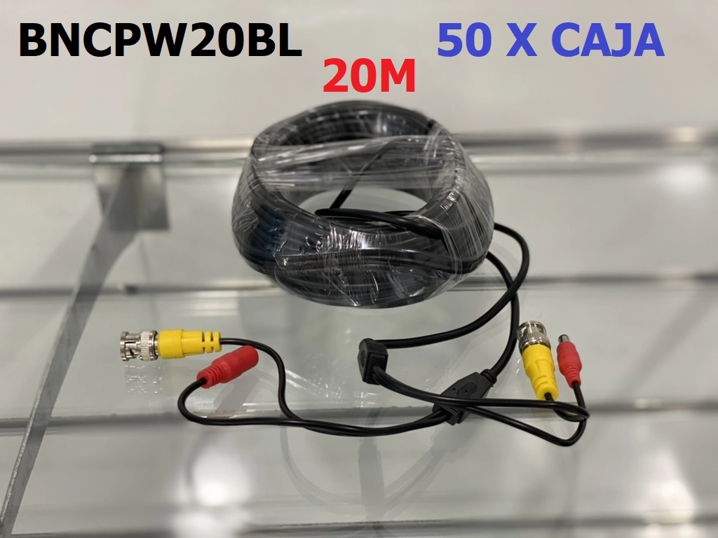 Cable de poder HC Premium BNCPW20BL de 20m con conectores BNC y DC, ideal para cámaras de seguridad CCTV, Plug & Play y duradero.
