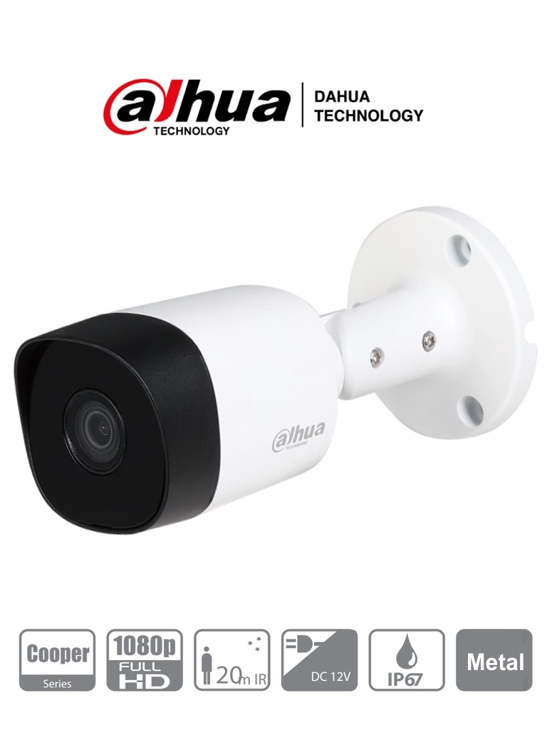 Cámara Bullet Dahua 2MP HDCVI Full HD, lente fijo 3.6mm, IR 30m, carcasa metálica IP67, compatible con 4 tecnologías (HDCVI/AHD/TVI/CVBS).