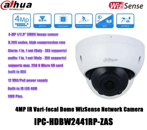 La DH-IPC-HDBW2441R-ZAS es ideal para proyectos profesionales en empresas, residencias, comercios y áreas públicas, ofreciendo seguridad avanzada y larga durabilidad.