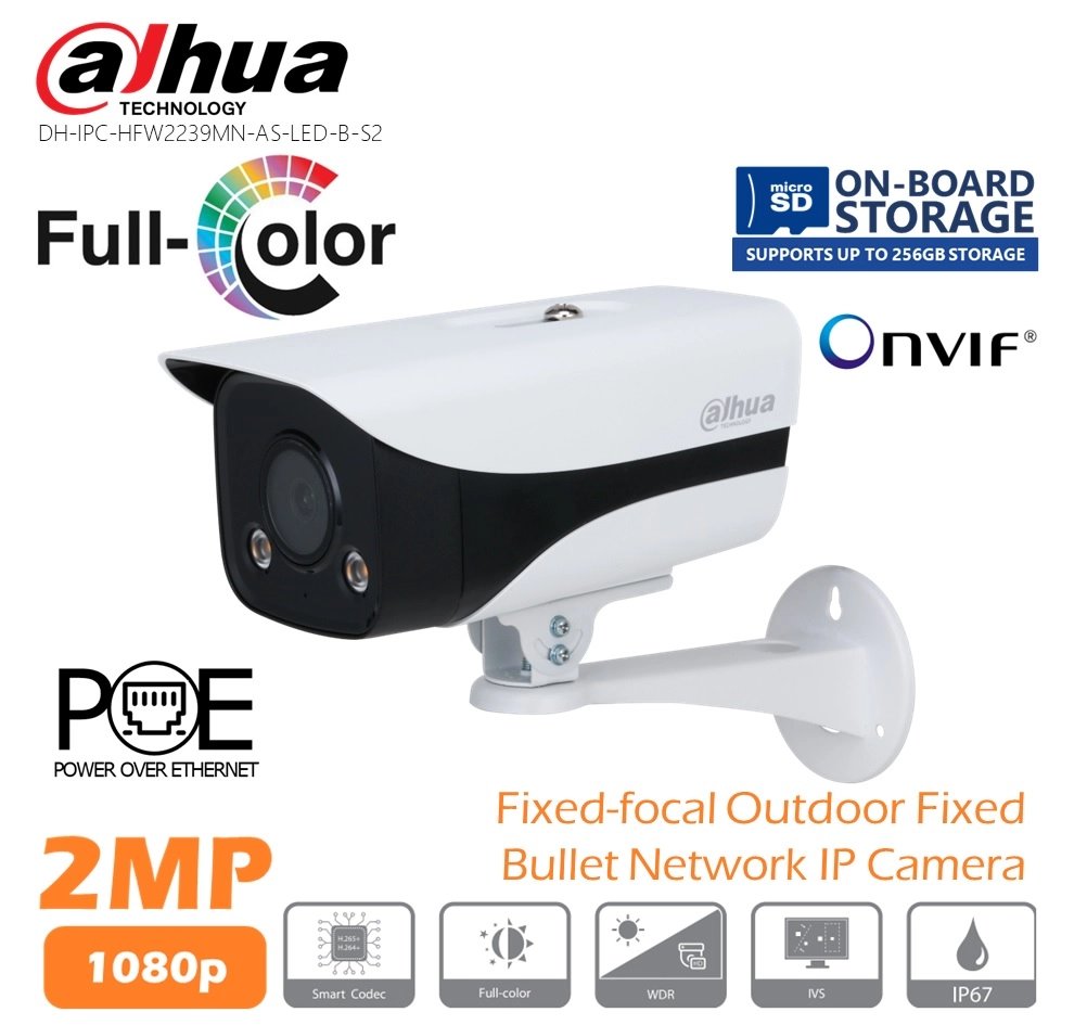 La Dahua DH-IPC-HFW2239MN-AS-LED-B-S2 es una cámara IP tipo Bullet de 2 megapíxeles que ofrece imágenes Full-Color en tiempo real, incluso en entornos con poca luz. Su avanzada tecnología de iluminación LED cálidapermite capturar video en color durante la noche, brindando mayor detalle y precisión en la vigilancia.