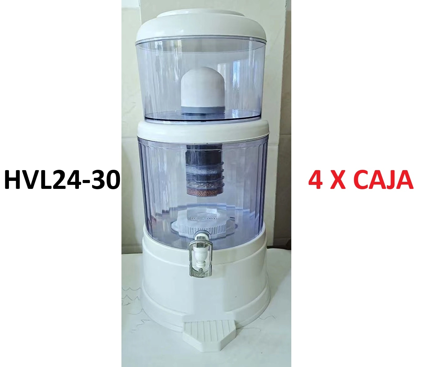 Dispensador de agua HVL24-30 con filtro purificador. Ideal para el hogar. Agua limpia y fresca sin electricidad, diseño práctico y resistente.