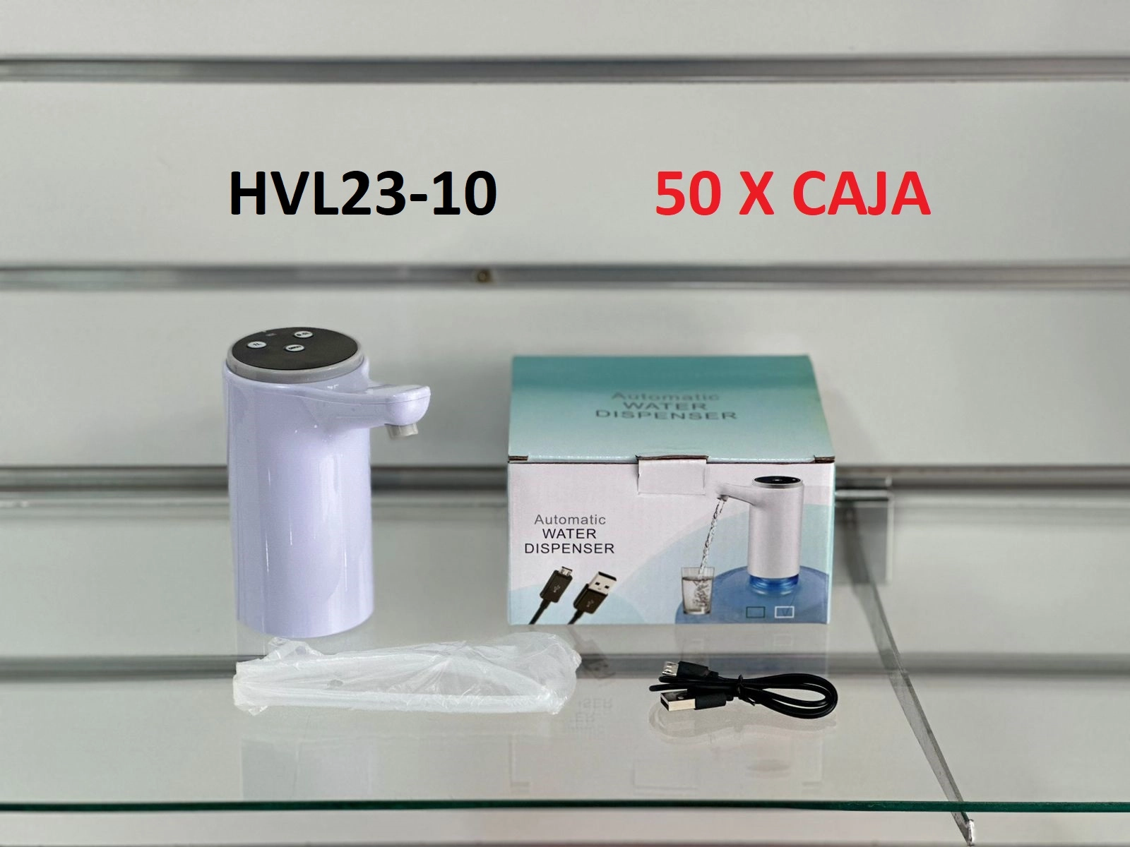 Dispensador HVL23-10 automático y recargable. Ideal para botellones de 10 a 20 L. Práctico, higiénico y fácil de usar en casa u oficina.