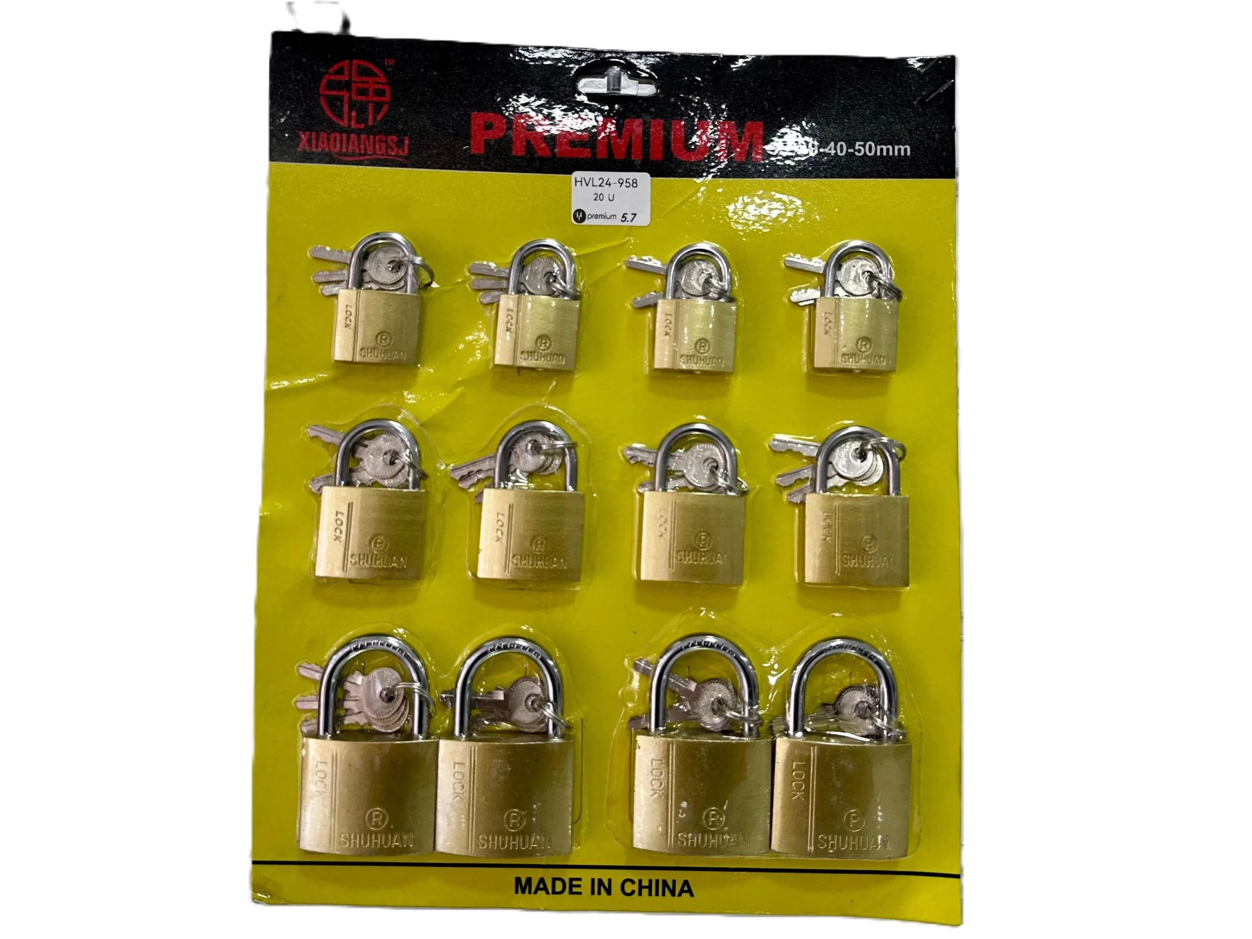 Set de candados S/M HVL24-958 de alta resistencia, incluye llaves. Ideal para proteger pertenencias en hogar, oficina, maletas y más.