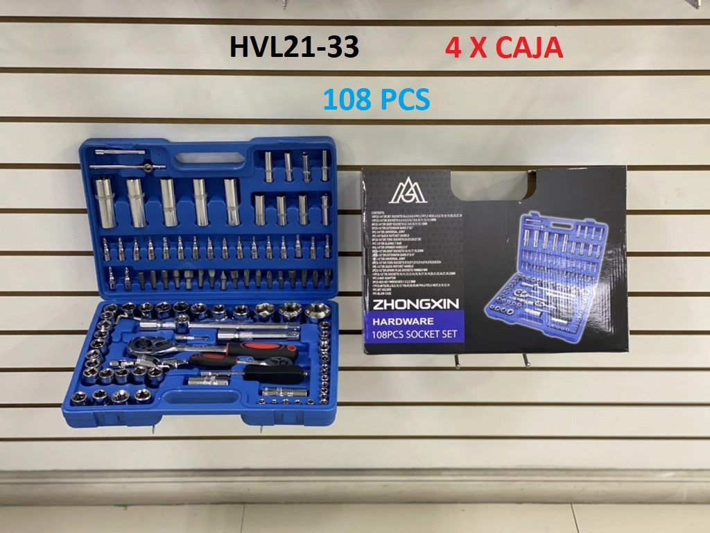 Set de Herramientas HVL21-33 HC Premium con martillo, alicate, llaves, destornilladores y más. Ideal para reparaciones en el hogar y el taller.